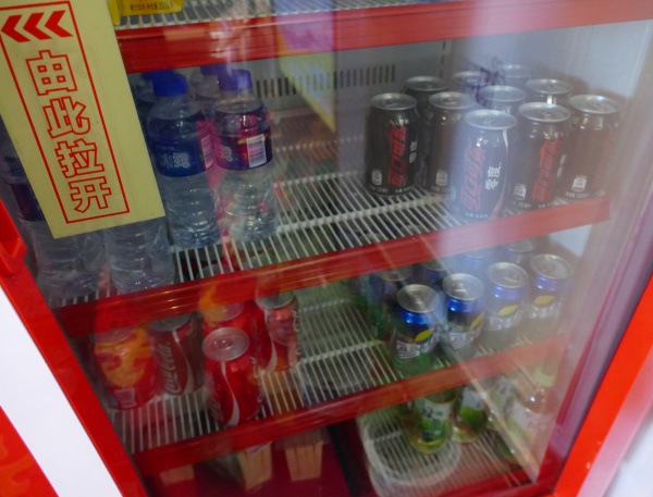 プライオリティパスで入れる中国・武漢の天河国際空港の国際線ターミナルのファーストクラスラウンジの無料のドリンク類ソフトドリンクはミネラルウォーター・コカコーラ・コカコーラゼロ・スプライト・緑茶がありました。