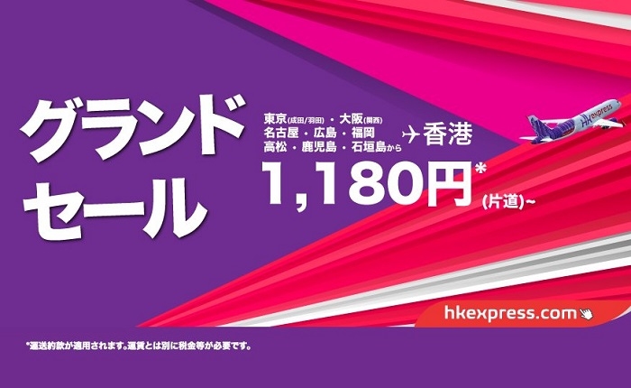 関連URL:香港エクスプレス「グランドセール」案内ページ (セール対象全路線の案内はこちら)
